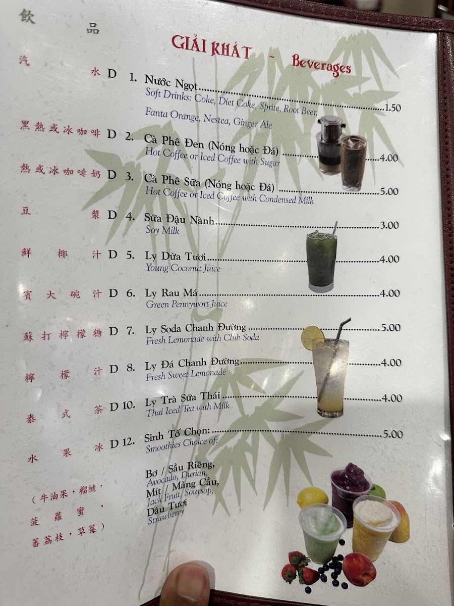 As you savor your meal, treat yourself to a drink from their Giải Khát menu, such as the bold Hot Coffee ($5.00), which rounds off your dining experience beautifully. Many patrons have noted the distinct flavors of the iced coffee and praised its robust taste, elevating any meal.